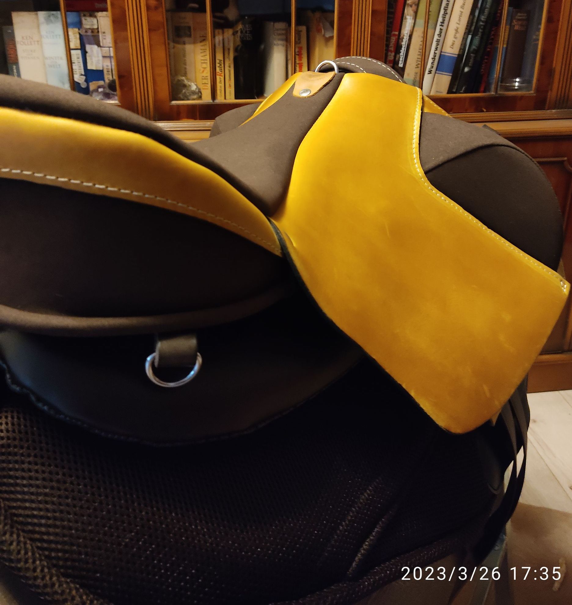 Im Gelände zeigt sich die Stärke des Quevis. Durch die schräge Pausche kannst du die Bügel kürzer schnallen und hast viel Halt im Sattel. Dein Bein liegt direkt am Pferd. Oder magst du lieber Fender? Oder ein Westernhorn, oder beides? Für den Quevis kein Problem! Du kannst ihn ganz nach deinen Wünschen gestalten.
